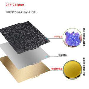 257*257mm 片面 PEI スプレー & 片面 PE0 ダイヤモンドフィルム - 磁気吸着なし