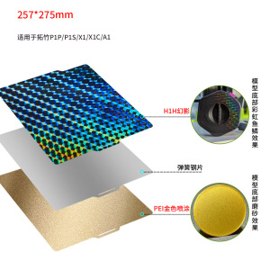 257*257mm 片面 PEI ゴールデンスプレー & 片面 H1H オーロラビームフィルム - 磁気吸着なし