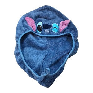 女性用ステッチ漫画ヘアドライキャップ、強力な吸水性と速乾性のシャワーキャップ、ターバン、コーラルベルベットの厚みのある家庭用シャンプータオル