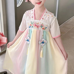 女童超仙中国风雪纺汉服连衣裙公主宝宝唐装改良襦裙子表演服夏装
