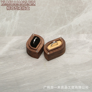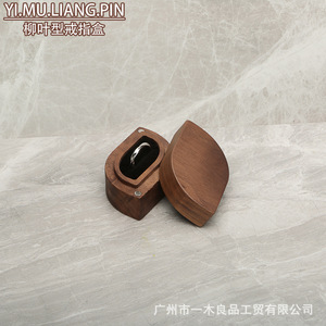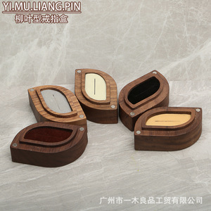 プロポーズリングボックスイヤリングイヤリングジュエリーボックス葉の形ブラックウォールナット無垢材ジュエリーギフト包装ボックスシングル