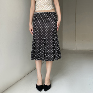 ヨーロッパとアメリカのレトロな夏INSスタイルの新しいミドル丈プリント水玉カジュアルベーシックヒップカバーフィッシュテールスカート卸売