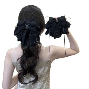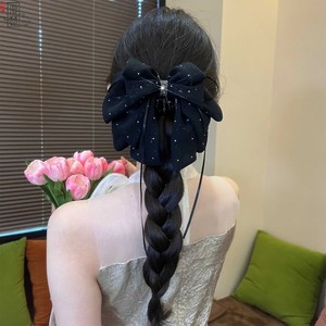星空メッシュリボンクリップ 2025 新星空ダイヤモンドヘアピン女性の後頭部クリップポニーテールヘッドバンド