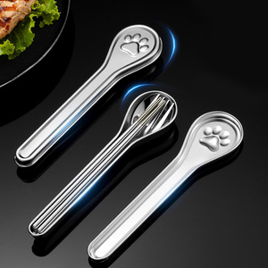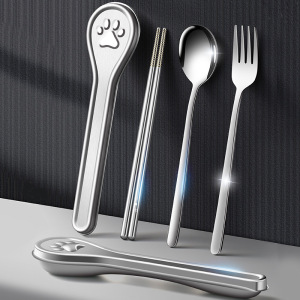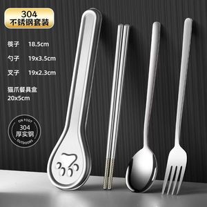 304 ステンレス鋼ポータブル食器セットクリエイティブ猫の爪ポータブルボックススプーンフォーク箸学生ランチ食器キャンプ