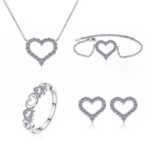 s925 スターリングシルバージュエリーセットハート型ペンダントネックレスブレスレットイヤリングリング女性モアッサナイトジュエリー卸売クロスボーダー