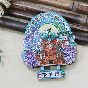 金属地标城市冰箱贴磁贴文创纪念品木质VR地区冰箱贴纪念品批发