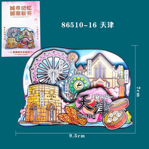 天津冰箱贴文创特色旅游纪念品国潮地标木质城市磁吸滴胶冰箱贴