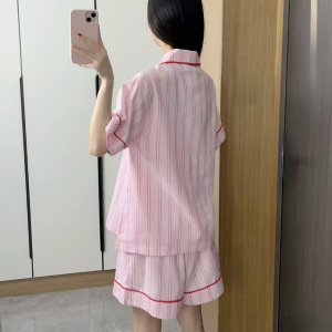 新しいホーム kt 猫テンセル綿ホーム服セットオールシーズン着用できるストライプパジャマ女性のサマースーツ