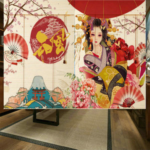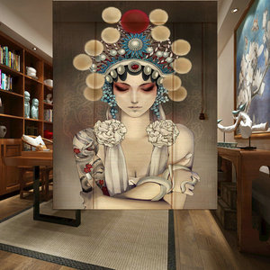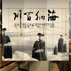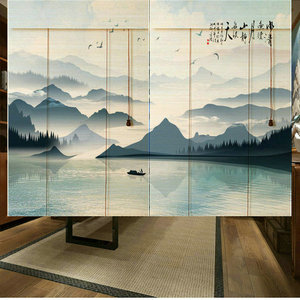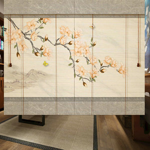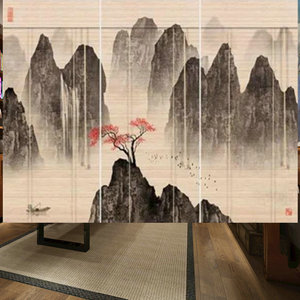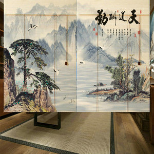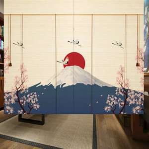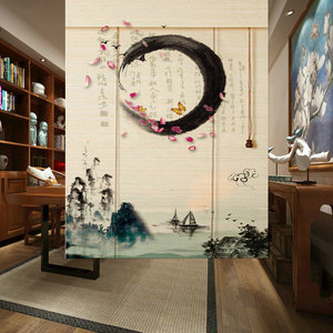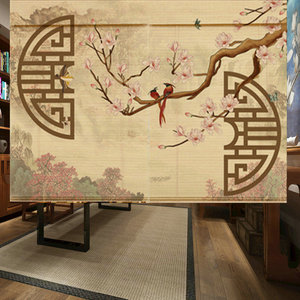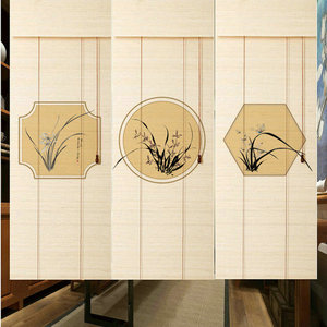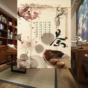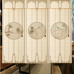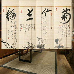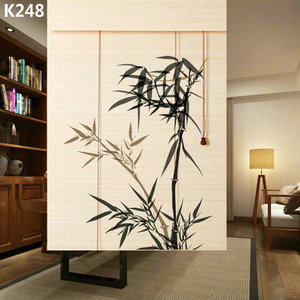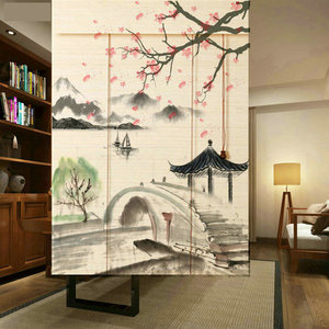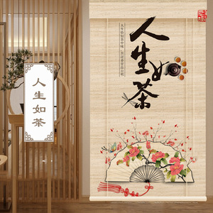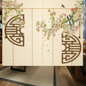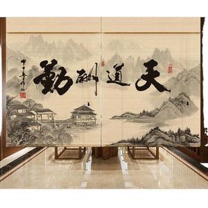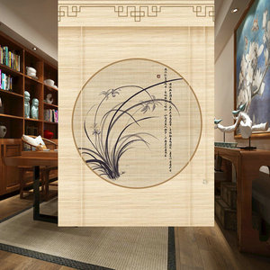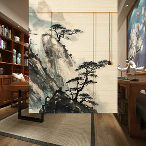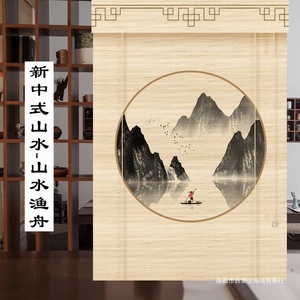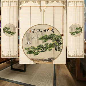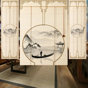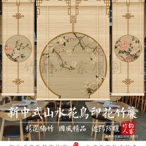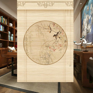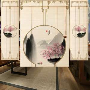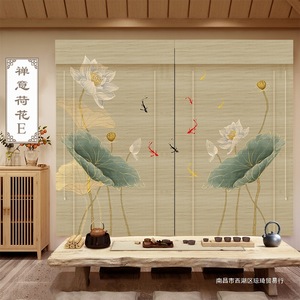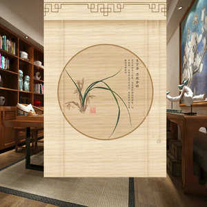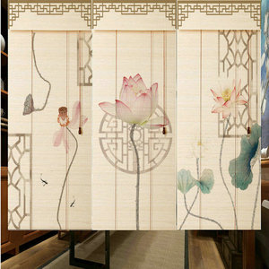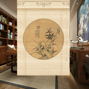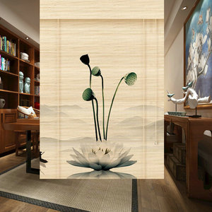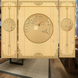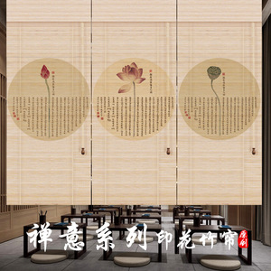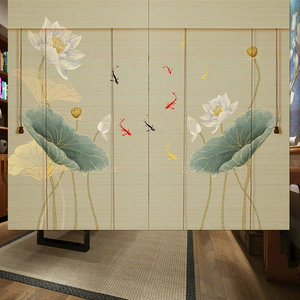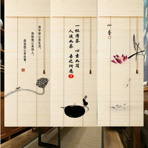 中式复古印花竹帘卷帘子升降窗帘背景墙茶室装饰遮光隔断卷门白色