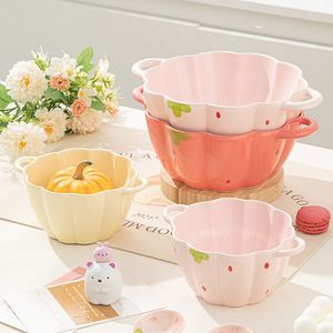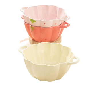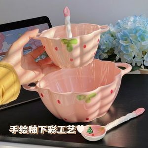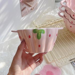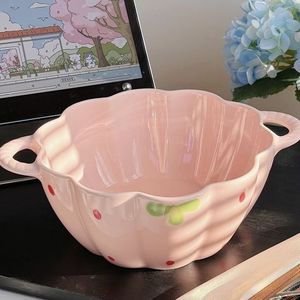 両耳スープボウルセラミックスープヌードルボウル家庭用イチゴ大容量インスタントヌードルボウルインスタイルスープボウル大ボウルカタツムリヌードルボウル