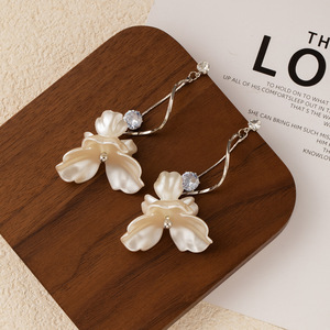 シルバーニードルスイートロングダイヤモンドホワイトフラワータッセルイヤリング優しいスーパーフェアリーフレンチリゾートシーサイド絶妙なイヤリング