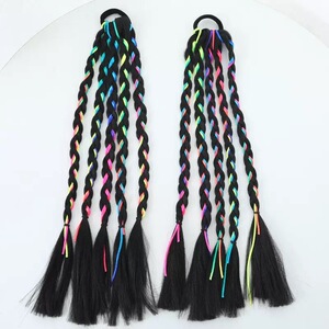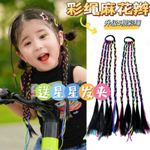 儿童假发辫子五彩绳编脏脏辫马尾辫子甜酷麻花辫彩绳街舞演出彩辫