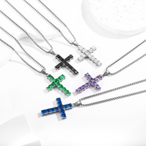 クロスボーダーホットスタイルキュービックインサートクロスペンダントジュエリーヒップホップシンプルハイエンドファッション多用途ネックレス