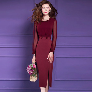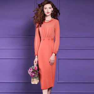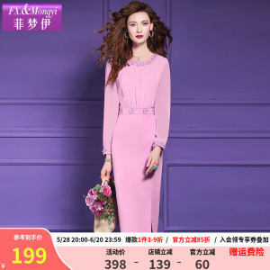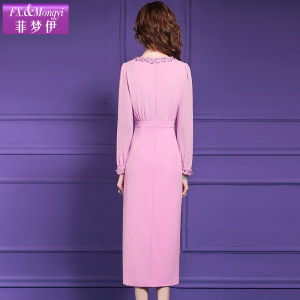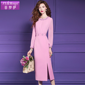 Feimengyi ビーズピンクシャツドレス女性のための春のハイエンド気質エレガントなウエスト通勤スリットプロフェッショナルスカート