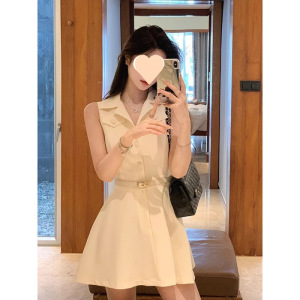 夏の新しいフレンチスタイルの純粋な欲望スタイルのハイエンドノースリーブシャツドレス女性のデザインウエスト気質ショートスカート