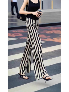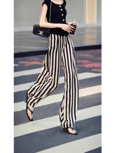 欧货设计感竖条纹高腰显瘦直筒长裤女夏季新款百搭遮肉垂感休闲裤
