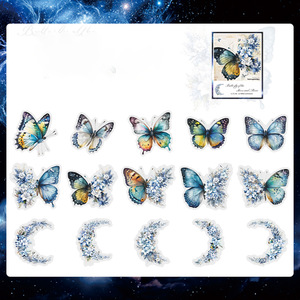 美しい一日ステッカーパック 星月蝶シリーズ 蝶と植物のコラージュ ハンドブックデコレーション 30枚入り 8種類
