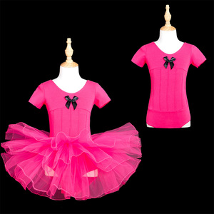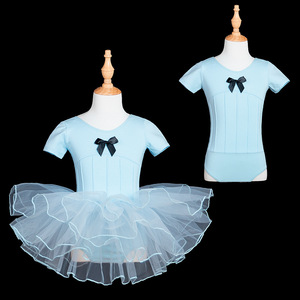子供用ダンス服、夏用半袖中国舞踊ボディダンス練習服、女の子用ワンピースチュチュスカート、芸術学校