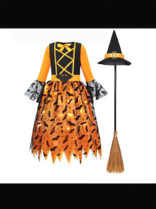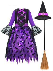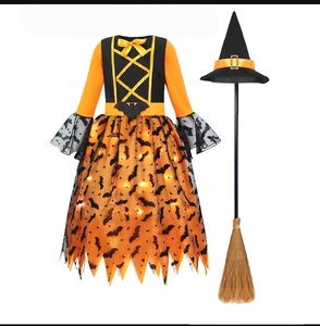 ハロウィン子供用魔女プリンセスコスチューム帽子付き仮装パーティー魔女パフォーマンスコスチューム学校ドラマパフォーマンスコスチューム