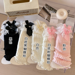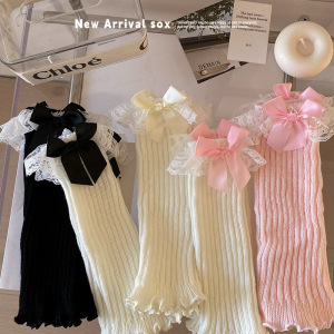2025 ソックス女性のレースのリボンパイル春と秋のロングソリッドカラーロリータレースバレエスタイルロングウール