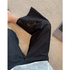 黒中空刺繍スプライシングワイドレッグパンツ女性の夏薄い 2025 新しい多用途パンツルーズ bf レイジースタイル