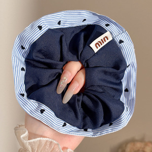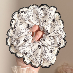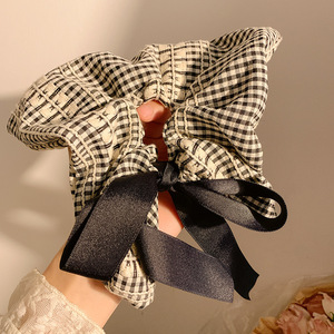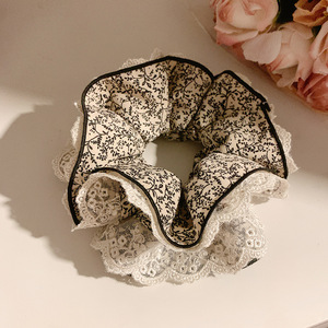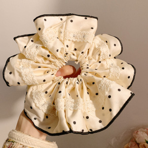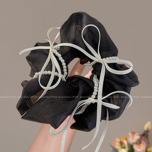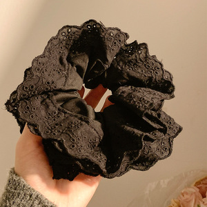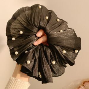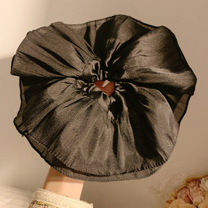 2#韓国風プリーツ特大大腸ヘアゴム-ブラック