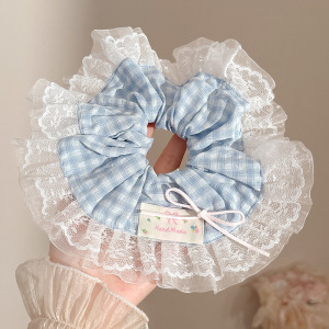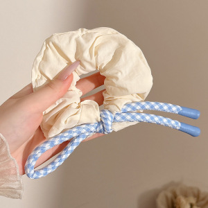 1#オフホワイトのヘアバンド、青いチェック柄のヘアロープ、ヘアゴム約11cm、ヘアロープ約19cm
