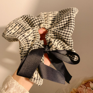 2#黒チェック柄スクエアヘアゴム Lサイズ-25cm