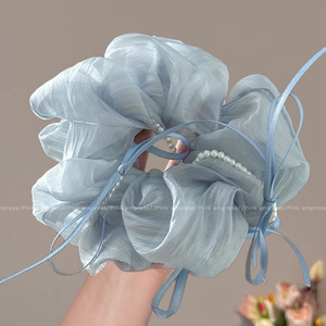 3#ブルーパールプリーツヘアゴム-20cm