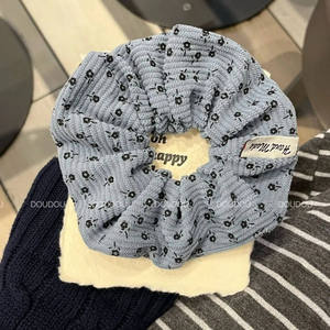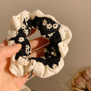 3#黒の花柄コーデュロイ ヘアゴム