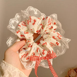 5#ベージュ多層レースヘアゴム-16cm
