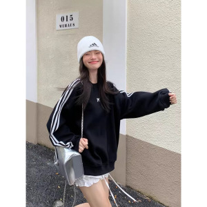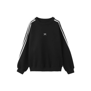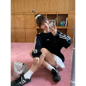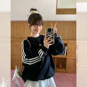 2563 # 宋正恩スリーストライプスリボン黒スウェットシャツ2025春新作韓国長袖トップジャケット