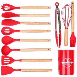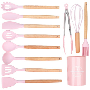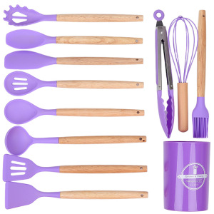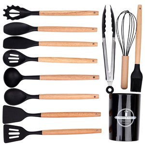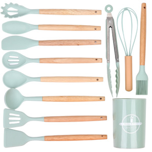 クロスボーダー木製ハンドルシリコンキッチン用品 12 点セットキッチン調理ノンスティックシリコンスパチュラスープスプーンフライパンスパチュラザル在庫あり