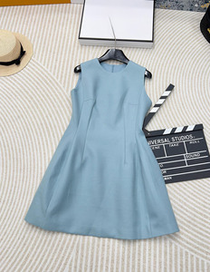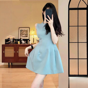 2025 春夏新作 Nanyou dio ハイエンド文学スタイルウエストソリッドカラーラウンドネックノースリーブベストドレス女性用