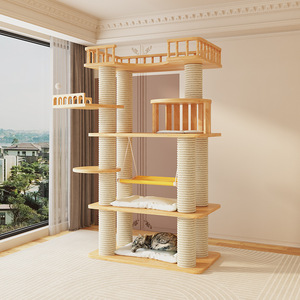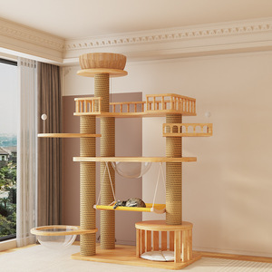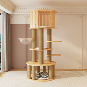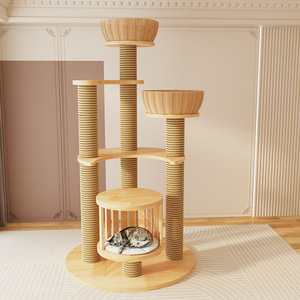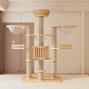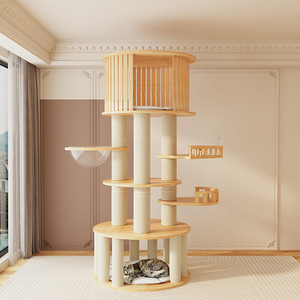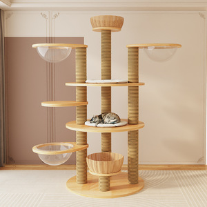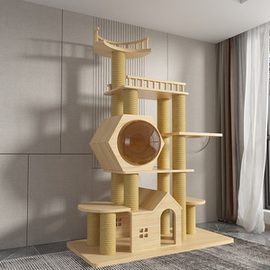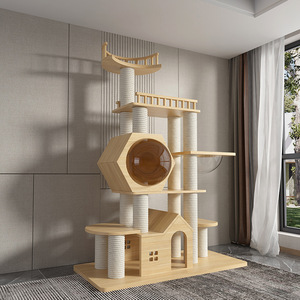 猫クライミングフレームメーカー、猫の巣一体型無垢材猫フレーム、猫スクラッチボード、耐摩耗性、脱落しないおもちゃ、スペースカプセル、ワンピース