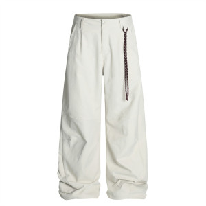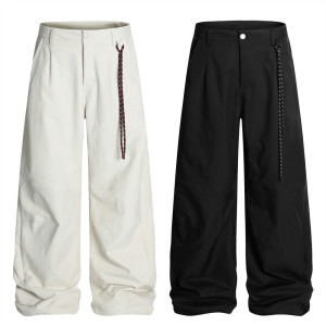 潮牌美式宽松阔腿长裤男士cleanfit设计感褶皱挂绳装饰坠感休闲裤