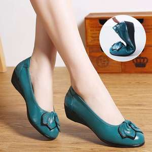 ママの人気の婦人靴、ラウンドトゥの婦人靴、ウェッジヒールのソフトレザーの婦人靴、ママの滑り止めの靴、夏の革靴