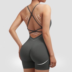 ヨーロッパとアメリカのシームレスな大きなバックレススポーツサスペンダージャンプスーツショーツフィットネスタイトピーチヒップを強調し、ボディシェイプとヒップアップ