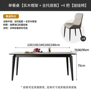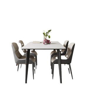 イタリア製長方形スレートダイニングテーブル、オール無垢材スレート4人用ダイニングテーブルと椅子の組み合わせ、軽くて豪華な小さなアパートのダイニングテーブル