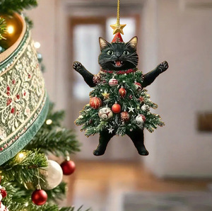 跨境亚克力小猫装扮成圣诞树的挂件 用于汽车后视镜 圣诞树等装饰