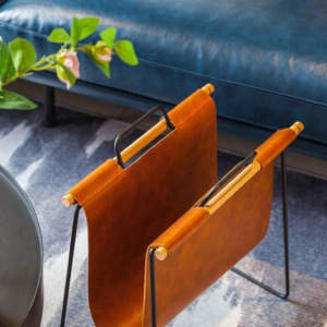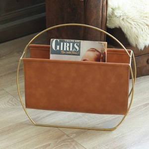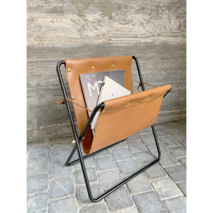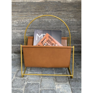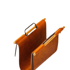 金属フレーム + 無垢材ロッド + 茶色の高品質環境に優しい革