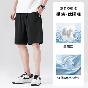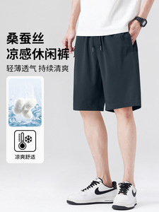 【高級マルベリーシルク】メンズカジュアルショートパンツ夏アイスシルク薄手2025新作速乾ルーズ5点パンツ男性用