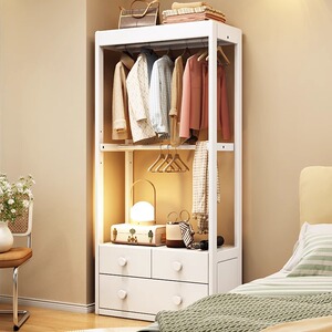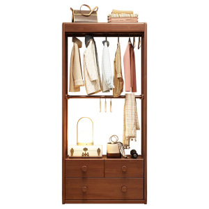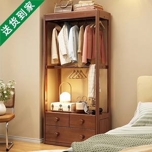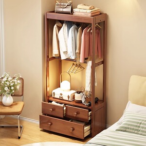 無垢材のコートラック収納キャビネット一体型床置き洋服ラック寝室のベッドサイドキャビネット引き出し収納付き家庭用収納ラック