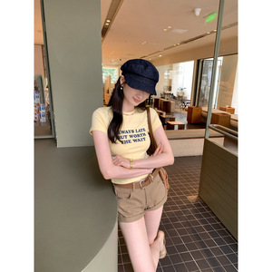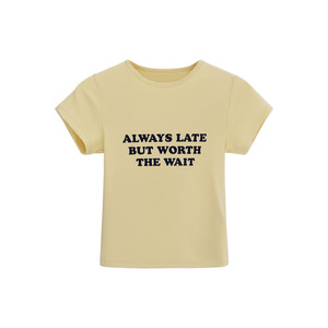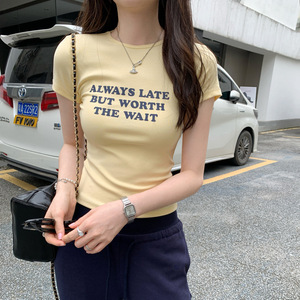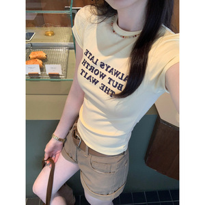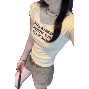 特別オファー卸売ユニークなラウンドネックスリム半袖Tシャツフェミニンな夏の新しいアメリカンレトロシングルトップ