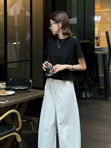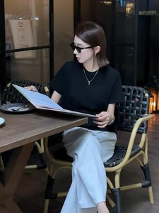 カジュアル シンプル 夏 ミニマリスト 万能 バックボタン ユニークで見栄えの良い 黒 半袖 Tシャツ レディース 薄手