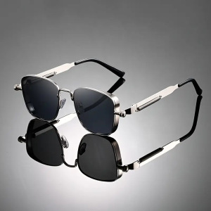 新型クロスボーダーレトロスクエアフレームスプリングレッグサングラスUVカットシルバーサングラスメンズパンクスタイルサングラス