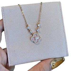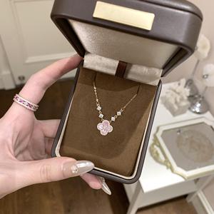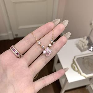 「Qimeng Tianying」ヴィンテージ中古桜ピンクマザーオブパール四つ葉のクローバーネックレスレディースライト高級鎖骨チェーン卸売