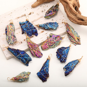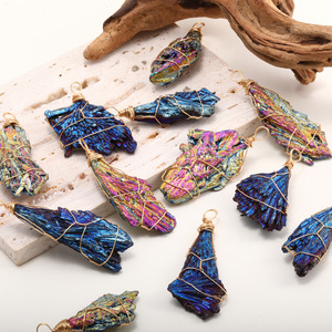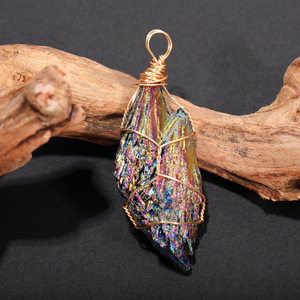クロスボーダー天然石カラフルなブラックトルマリン原石巻きペンダントヨーロッパとアメリカのメーカー直販ファッショナブルで多用途なブラックトルマリン