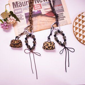 miu 小さくてかわいいレザー小銭入れキーホルダーペンダントヒョウ柄ビーズリボンバッグペンダント