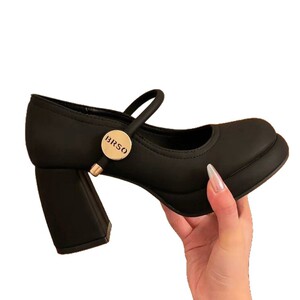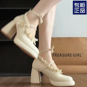 高跟鞋女粗跟2025年春季新款气质单鞋浅口百搭一字带法式玛丽珍鞋